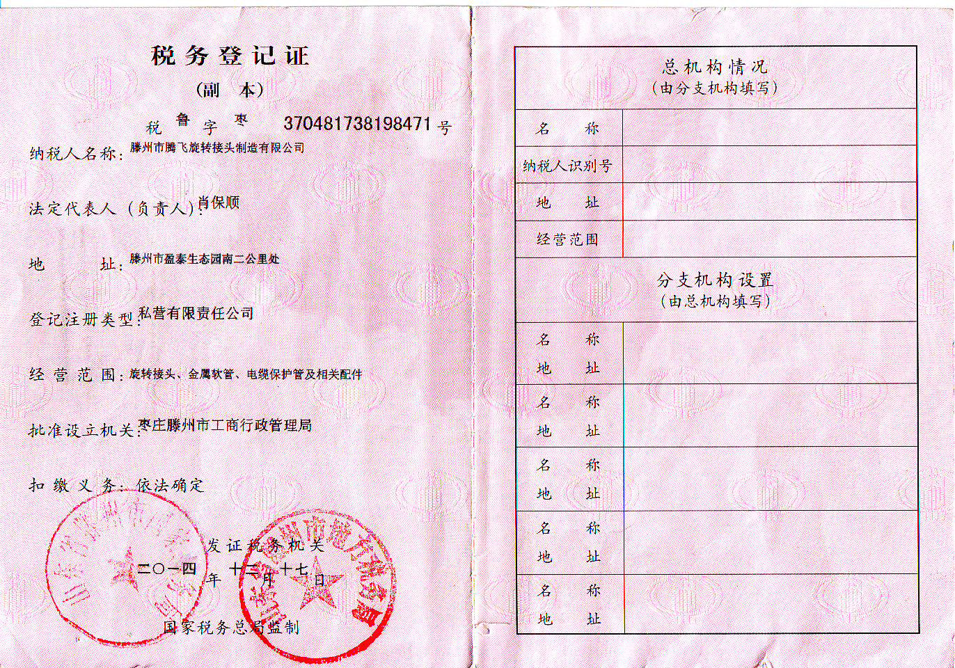 滕州市騰飛旋轉(zhuǎn)接頭制造有限公司 地址:山東省滕州市洪緒工業(yè)園 電話:0632-5501758 5503838 傳真:0632-5501756 郵箱:tengfei76@163.com